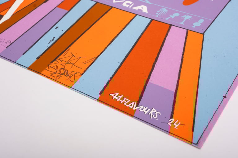 The concept for “Resonancia” by the Berlin-based artist duo 44flavours was developed at the end of 2024 as a kind of artistic résumé, created through a playful visual ping-pong between Sebastian Bagge and Julio Rölle.